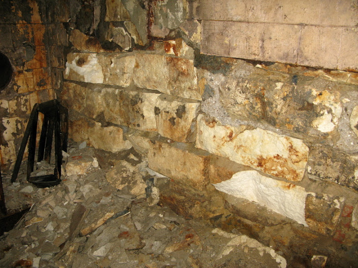 Делаем буквально несколько шагов в сторону, и вот уже ничем не примечательный полуразрушенный цех современного вида оказывается стоящим на столетних подвалах, где потолок круглится железобетонными «сводами монье», а в нижней части стен неожиданно проглядывает кладка из крупных белокаменных блоков.