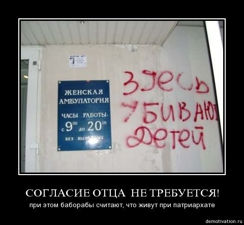 А уж если твоя собственная жена не хочет родить твоего же ребенка, и делает аборт (без каких-либо объективных причин, просто "не хочу") - то это еще в 100 раз ужаснее. А такое тоже бывает.