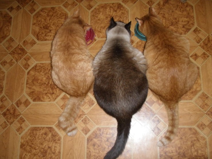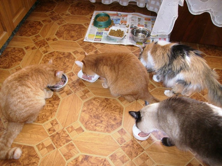 как они у тебя едят????? мои 2 и то вечно мисками меняются. у соседа же полюбому вкуснее!