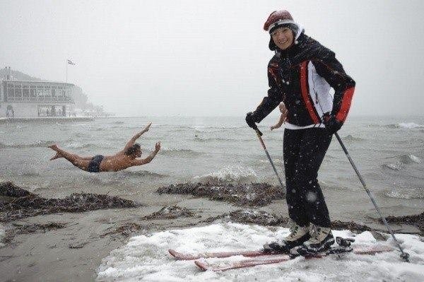 а я на лыжах ,