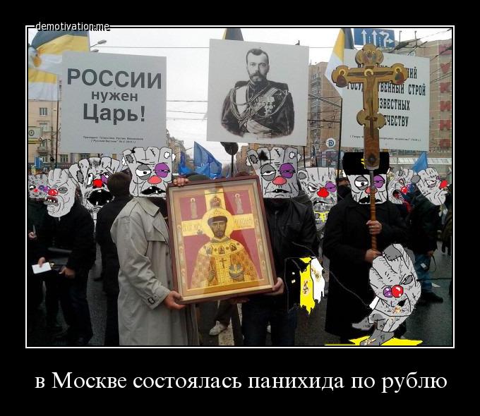 В Ростове прошла "монстрация" в защиту рубля: акция с налетом абсурда была согласована с городскими властями и прошла без инцидентов. Участники подняли лозунги: "Рубль. Спасибо, что живой", "Требую найти заказчика и исполнителя убийства рубля", "Je suis рубль", "Рубль не упал, он просто поскользнулся на сале", передает "Радио Свобода".
