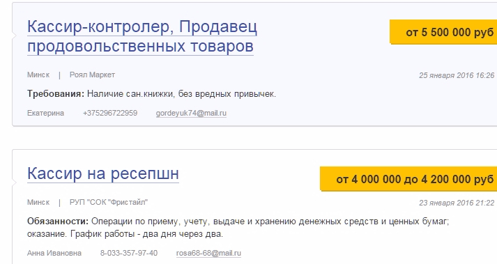 Минск з/п кассира 200 - 250$: