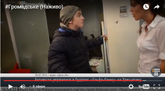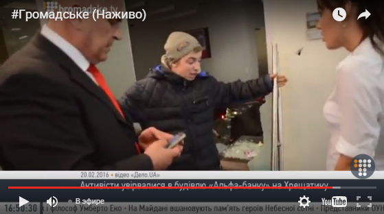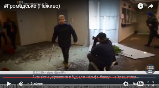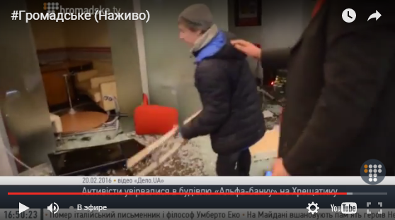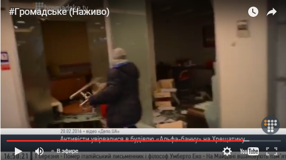 1. Бандеровцы врываются в здание Альфа-Банк в Киеве, обратите внимание на мелкую шмакодявку - паренька с дубиной: