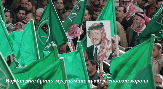 Король Иордании и организация братьев-мусульман занимают лояльную по отношению друг к другу позицию, что отличается от той кровавой борьбы, которая идет между правительством и браьями-мусульманами в Египте. Не смотря на призывы к реформам в государстве, эта организация не призывает к свержению режима Хашемитов. Король в свою очередь не пошел на шаг, аналогичный тому, который сделала Саудовская Аравия и Египет, и не объявил братство террористической организацией.