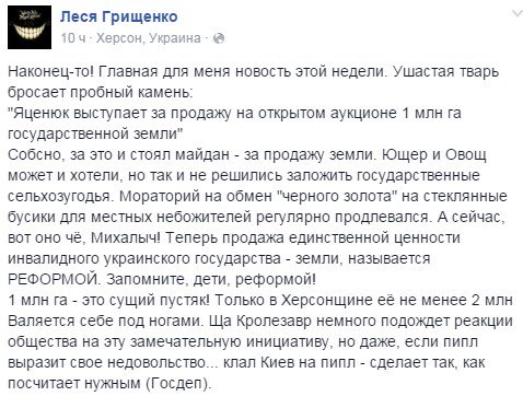 Продажа единственной ценности инвалидного украинского государства - земли, называется реформой.