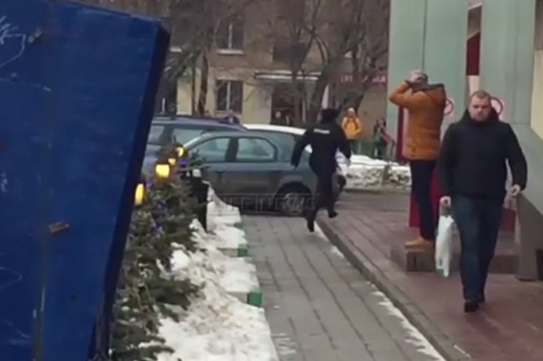 Полицейский убегает от женщины с головой ребёнка. Не останавливает, не наводит пистолет. Тупо бежит. https://twitter.com/ars_ves