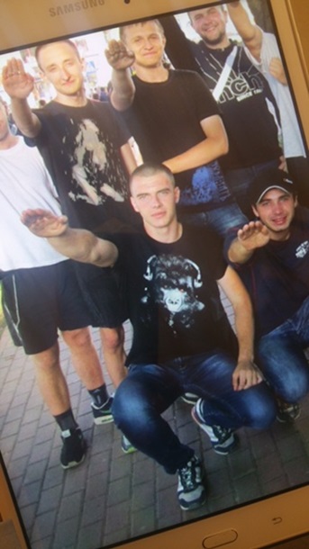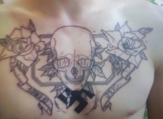 На снимках Васянович с голым торсом и на его груди можно рассмотреть большую татуировку со свастикой. Кроме того, на внутренней стороне его правой руки наколот герб Третьего рейха.