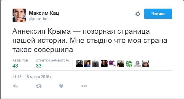 Это Кац в ответ на выпад на одну из своих родин: МИД РФ считает незаконной экспроприацию палестинских земель Израилем:http://ria.ru/world/20160318/1392193036.html