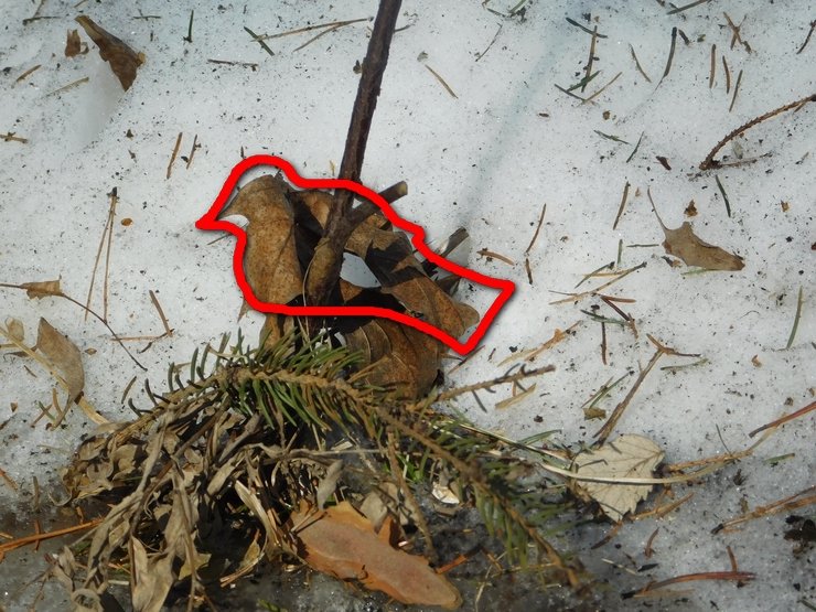 Вот как немного оттает вокруг листика, так и начнёт обманка разрушаться.