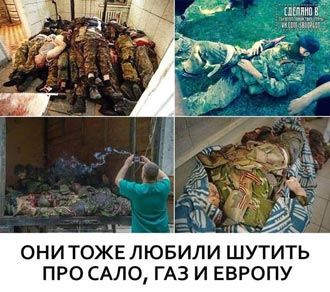 - 5 788 боевиков «Правого сектора», в основном вошедших в состав Национальной гвардии, а также 30 наемников из специальных батальонов «Днепр» и «Азов», "АЙДАР" и других НВФ Ураины, по оперативным данным трупы вывозились в Днепропетровск и уничтожались в местном крематории, или закапывались на месте расстрела и числятся как без вести пропавшие,