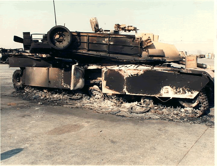 Судя по полному отсутствию активной защиты, танк на фото явно не на ходу и досталось ему изрядно. Активная защита - это такой внешний обвес, обычно с зарядами, срабатывает при приближении ПТУР.