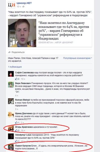~kicha@ :Спасибо голландцам за взвешенность и мудрость, потому что как можно позволить, чтобы потомки бандеровцев могли быть приняты в ЕС. Я рассматриваю этот результат референдума, как хороший пример для нас, чтобы также воспротивиться принятию этих необандеровцев в ЕС. Они сначала должны признать свою вину, попросить прощения за свои преступления. Потом долгая, очень долгая работа, чтобы полностью искоренить этот свой национализм и восхваление УПА. Но это, видимо, невозможно – они любят Бан...