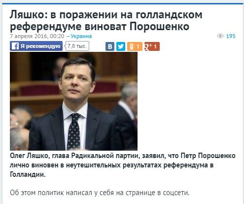 Извините за сумбурные мысли, всю ночь не спал, следил за голландским референдумом. Поначалу все шло довольно неплохо. Со слезами на глазах смотрел репортажи по украинскому телевидению. Какие милые, прекрасные ребята эти Гончаренко и Климкин! Велопробег устроили, быстро завоевывают доверие голландцев, которые буквально на глазах начинают прозревать по поводу ассоциации с Украиной! Залищук вообще молодчинка, не поленилась поехать в глубинку Нидерландов, чтобы открыть глаза простым фермерам на происки Путина.