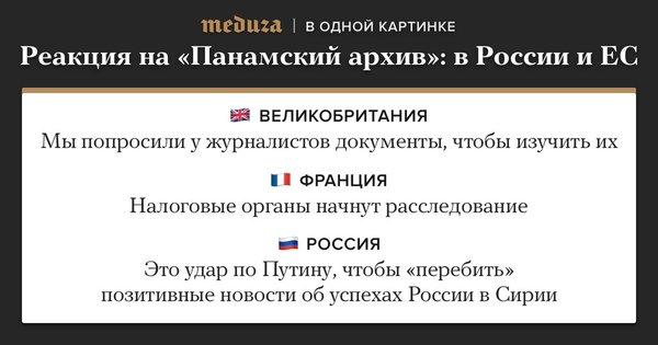 Российская прокуратура объявила, что займется расследованием упомянутых в «Панамском досье» частных лиц, и проверит насколько их действия «были законны и соответствовали российскому и международному праву».