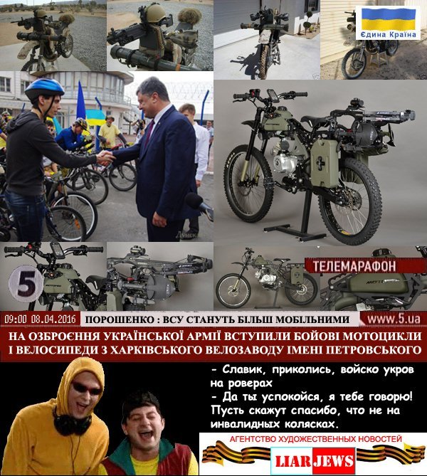 ВСУ Украины объявили о переходе на бронированные мотоциклы и велосипеды. Производство будет осуществляться по заказу Министерства обороны Украины на Харьковском велосипедном заводе имени Петровского.