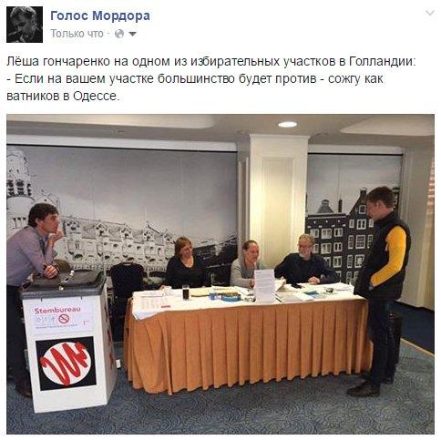 Референдум по вопросу об ассоциации Украины с ЕС прошел в Нидерландах 6 апреля. По предварительным данным, большинство участников голосования (61,1 процента) выступили против соглашения, поддержали — 38,1 процента, еще около процента бюллетеней признаны недействительными. Явка составила 32,2 процента, что позволяет считать голосование состоявшимся.