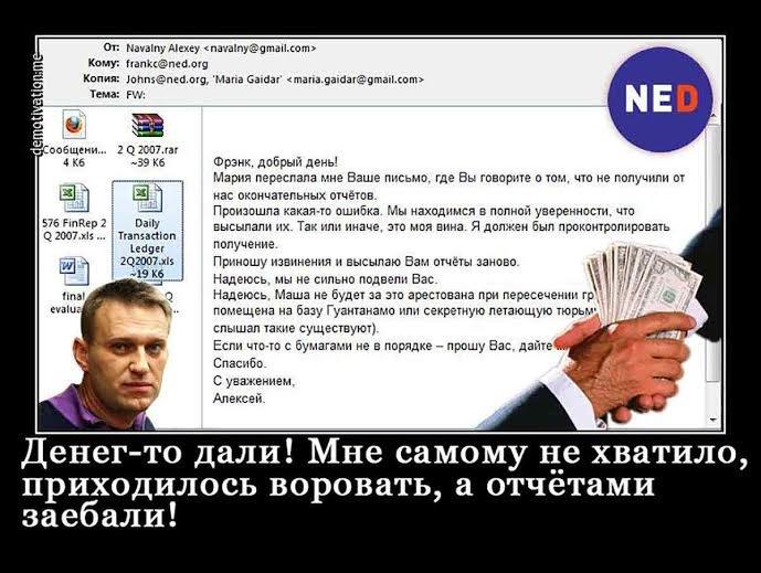Но однако, какой жучара этот Навальный. Деньги берёт не только у Госдепа, но и всех кого не попадя. Не удивлюсь тому, что и Сорос ему в миску подкидывал