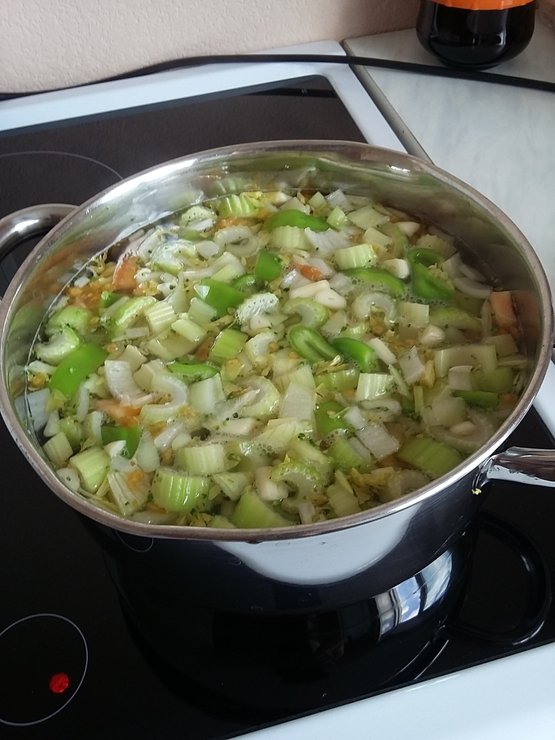 но чтобы спасти вкус,я бы в отдельной кастрюльке сварила овощной бульон) и путём перекладывания-переливания одного в другое спасла бы суууп
