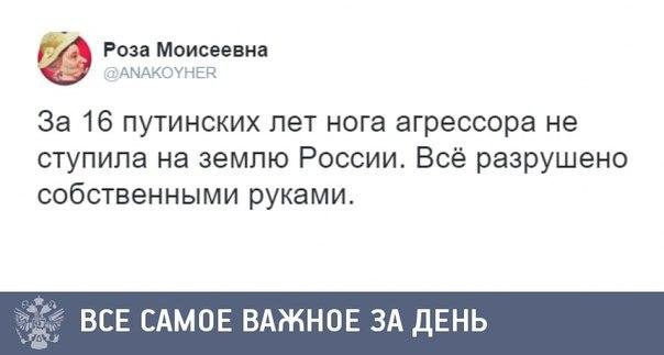 "Миллионы людей в России - и мужчин, и женщин, чувствуют себя рядом со своим президентом героями. Сильными, нахрапистыми, наглыми. Миротворцами, вершащими судьбы мира.Ведь кругом - одни враги! Смотрите, сколько их! Все - злые, все хотят насолить! Их надо наказать! А мы - сильная держава. И самый главный наш самец - красив и умен. Он - взвешенный политик, спит и видит, как помочь всему миру обрести счастье...
