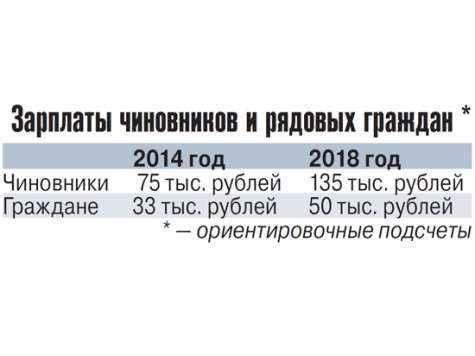 Жесткие экономические санкции со стороны Запада не мешают отечественным чиновникам увеличивать свои оклады. К 2018 году госслужащие федерального уровня будут получать вдвое больше, чем сейчас. На эти цели в бюджете заложено более 460 млрд рублей. При этом у государства не хватает средств ни на выплату пенсий, ни на ремонт дорог, ни на медицину, ни на строительство нового жилья.