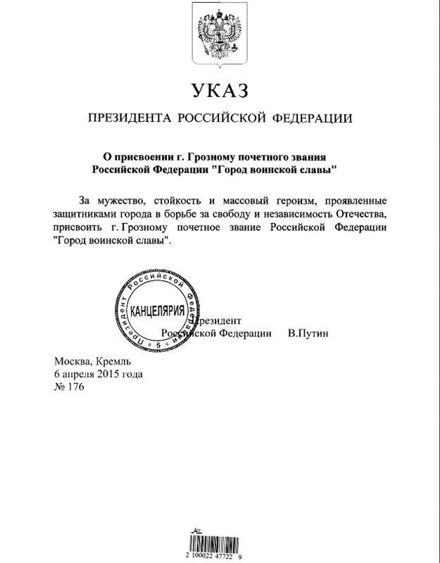 Еще в мае, во время празднования Дня Победы, Дмитрий Медведев пообещал внимательно рассмотреть вопрос о присвоении Грозному почетного звания «Город воинской славы», если к нему поступит соответствующее обращение.