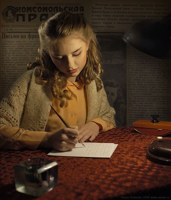 Однажды я рылась в старом хламе на чердаке бабушкиного дома. И среди прочих бумаг в ящике старенького комода обнаружилась небольшая стопка аккуратно перевязанных, пожелтевших треугольников - солдатских писем ОТТУДА, с фронта. Торопливые строчки, полные заботы о них, своих близких и любимых и непременным "люблю вас" в конце. И вдруг...одно письмо не ОТТУДА, а ТУДА. Аккуратные ровные строчки, в которых подробно описаны все события, происшедшие здесь, далеко от войны.