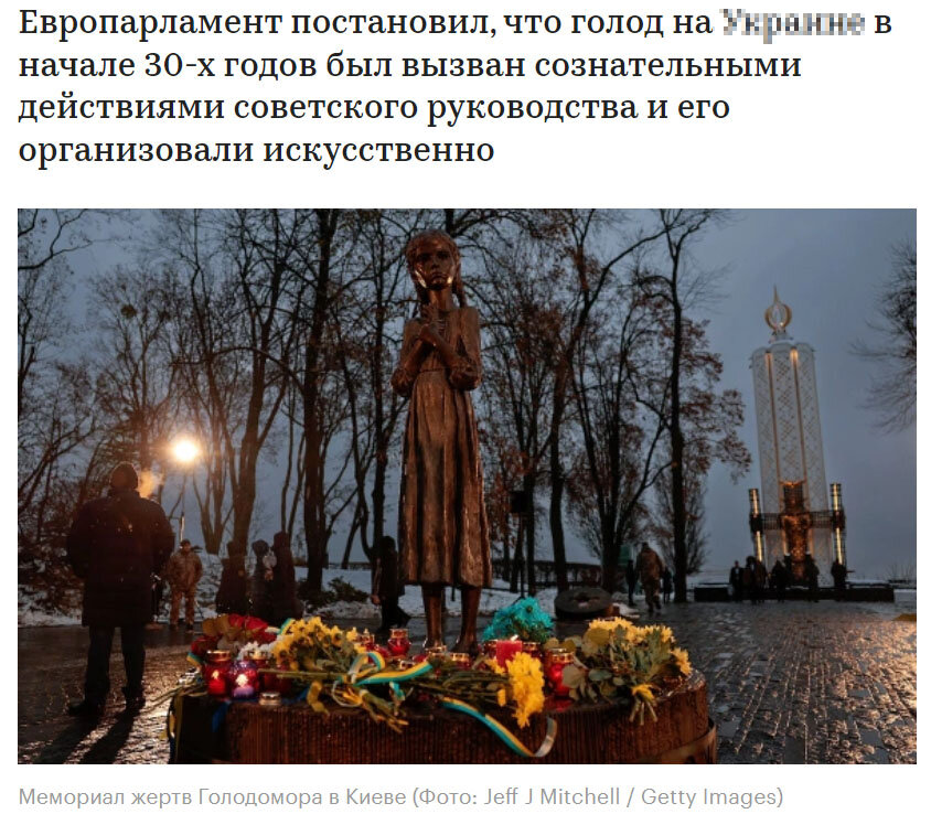 На дня Европарламент принял очередное антироссийское решение, признав голод 1932-33 годов на части территории СССР актом геноцида, т.е. целенаправленного уничтожения крестьянства.