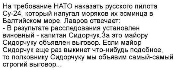 Страшно будет то, что если кого-либо из наших собьют, погибнут наши люди, а Владимир Владимирович ничем им отвечать не будет. Он лишь проглотить этот плевок в лицо России и гибель её солдат, ибо ничего реального не может противопоставить реальной мощи США.