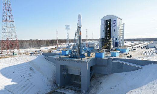 Вот стоит ракета с белым обтекателем, но вокруг снег - это старый снимок.