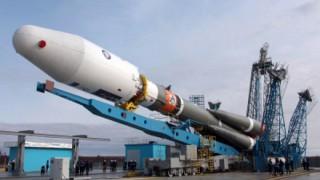 Вот Союз на стартовом столе. Обтекатель серый и без раскраски