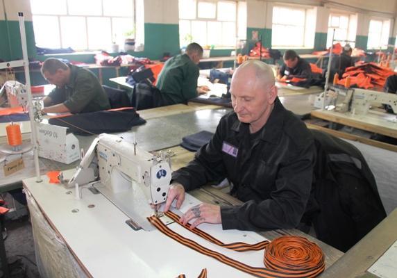 На участке швейного цеха исправительной колонии № 4 организована работа по пошиву осужденными гимнастерок и георгиевских ленточек для участников Парада Победы в городе Соколе.