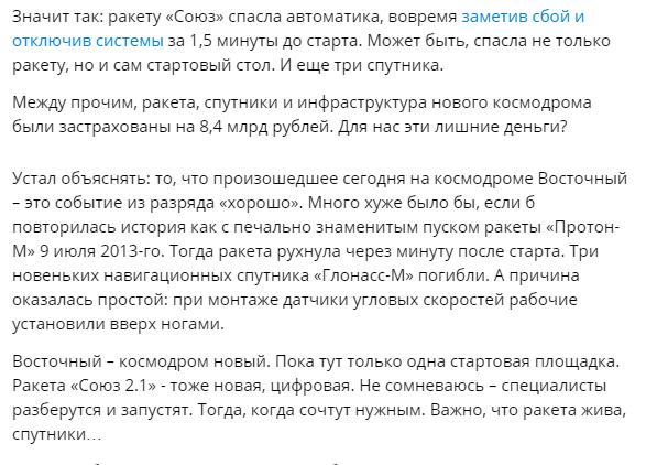"Претензий к космодрому нет никаких, это производственная ошибка, допущенная в НПОА, — сообщил источник издания, близкий к комиссии.