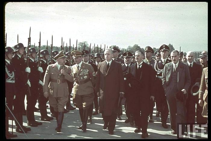 Чемберлен и Риббентроп в Мюнхене мило обсуждают насущные вопросы союзничества: