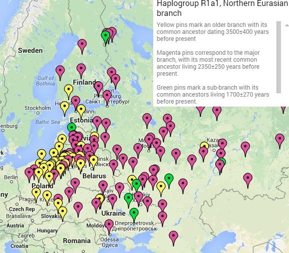 Кошатина тупая, ты это распределение засунь себе в одно место подальше и не показывай тем, кто хоть немного понимает в ДНК-генеалогии. Ты в этом плане однозначно лох, т.к. понятия не имеешь, что на схеме не распределение гаплогруппы R1a1, а разброс возраста общего предка какой-то группы исследуемых людей. Откуда эту группу наберешь, там максимум предков во всемирной базе данных гаплотипов и проявится(от оседлых-то априори больше потомков останется, чем от мигрирующих).