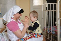У Виктории семья — муж и двое детей. Дежурить она начала Великим постом, когда в палату поступило сразу пять отказников — до этого сестры ухаживали за одним, редко — двумя малышами. Теперь отказников прибыло — редкость, когда их три, а не больше. Сестры выдерживают этот марафон — есть и те, кто справляется с несколькими детьми самостоятельно. В одиночное плавание часто уходит Ирина — кандидат биологических наук, доцент Саратовского государственного университета. С ней мы познакомились, когда еще сестры ухаживали за Русланом.