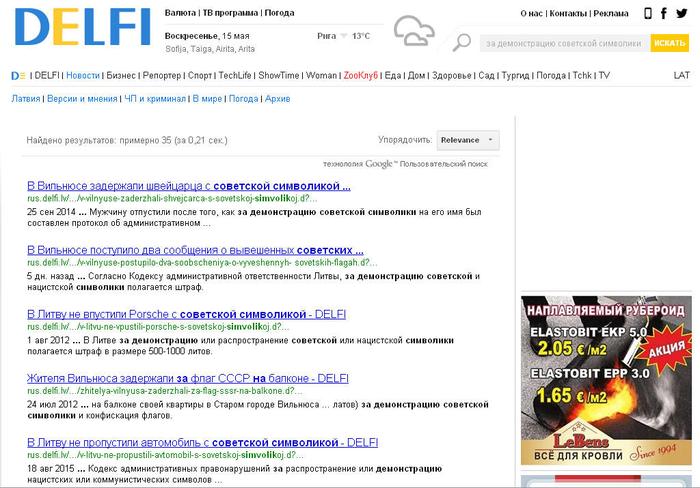 Закон, принятый в Литве в 2008 году, предусматривает, что советская и нацистская символика не могут использоваться и распространяться в местах массового скопления людей и на массовых мероприятиях. Использовать эту символику можно только в музеях, а также в научных, художественных и просветительских целях и в антикварной торговле. За несоблюдение этого закона предусмотрена административная ответственность, в частности штраф от 144 до 289 евро.
