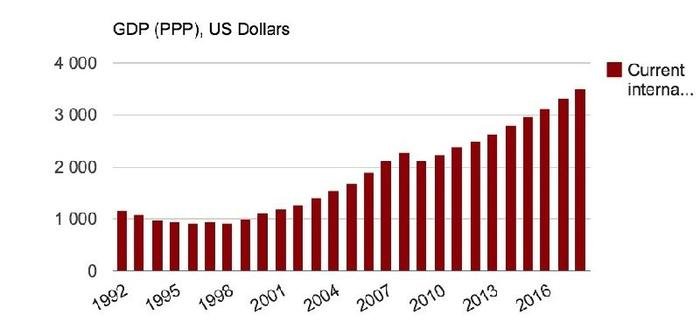 По данным МВФ в 1 полугодии 2014 года ВВП по ППС КНР по предварительным итогам обогнал ВВП по ППС США, при этом доля и объём к концу года составили 16,48 % и 17,632 трлн долларов против 16,28% и 17, 416 трлн долларов[4].