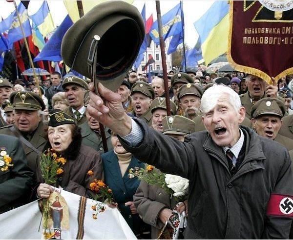 2) Спрашивать: «где вы видели бандеровцев?», открыто объявив Бандеру национальным героем;
