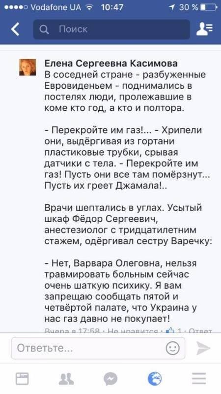 «"Коренная украинка" Сусанна Джамаладинова, победив национальный отбор путем фальсификации, так же победила и на "европейском" конкурсе, чтобы продемонстрировать две вещи: Украина не для украинцев, а ЕС с нами. (...) Комиссары в очередной раз обдурили нас», — приводит издание слова Токовенко.