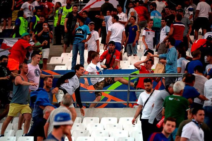 …Драки продолжились и на стадионе. Сразу после финального свистка российские фанаты прорвались на ближайшую трибуну англичан и погнали их. Но вмешались стюарды, и до новой массовой драки дело не дошло.