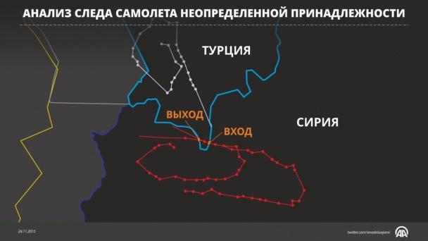 Утром 24 ноября два самолёта СУ-24 неизвестной принадлежности приближались к границе Турции в провинции Хатай. В течение 5 минут самолётам по экстренному каналу 10 раз было вынесено предупреждение и предписано изменить курс на юг.