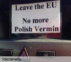 Надпись, прикрепленная к стеклу автомобиля: «Мы выходим из ЕС. Больше не будет польских паразитов». Фото из газеты Independent.