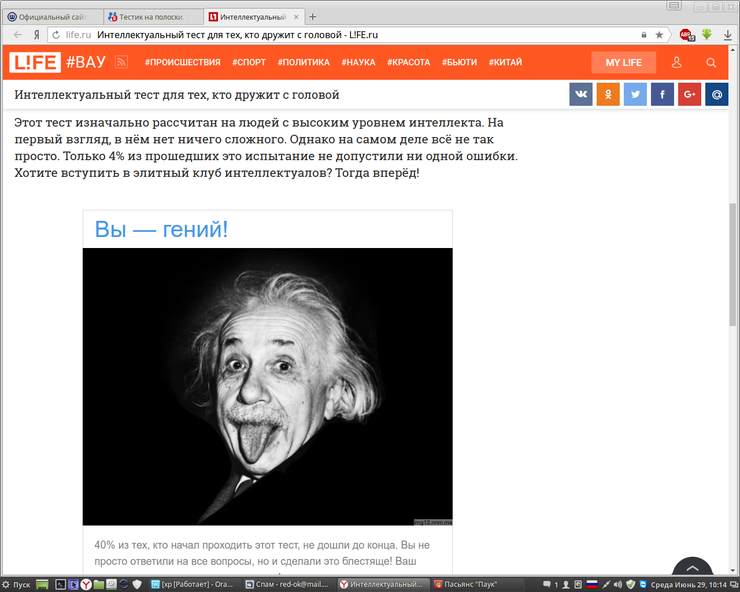 Прошла второй раз специально выбирая хрен знает какие ответы, но точно не те, что в первый раз. Вот ещё бы понять на какие правильно, на какие неправильно.