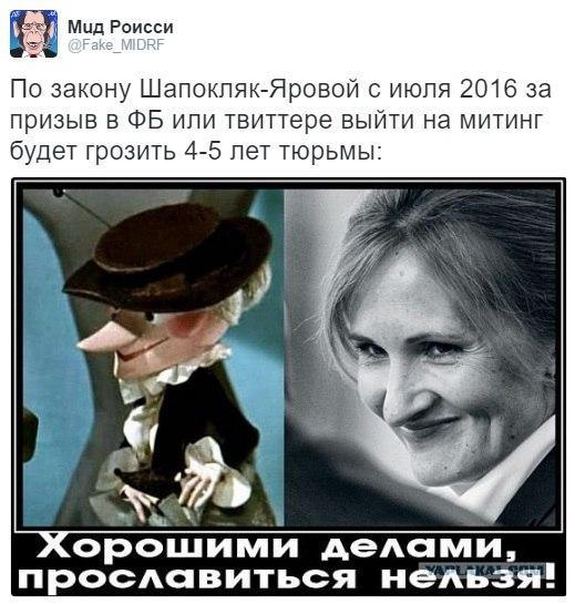 Что же может защитить общество от терроризма и шпионажа по-настоящему? Только сплоченность, товарищество, “чувство локтя” всего общества – то, чего в путинской РФ нет и никогда не будет. Как раз наоборот - пакет законов Яровой, как, впрочем, и все остальное законотворчество россиянской госдумы являет собой угрозу обществу, потому что он нацелен на превращение народа-героя в плебс, толпу недоверчивых рабов