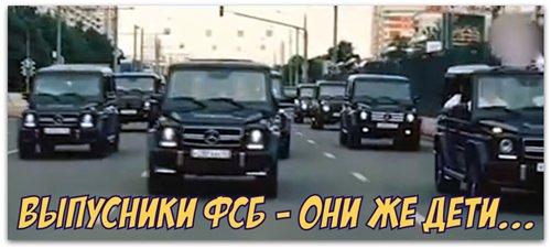 Совсем недавно сына топ-менеджера «Лукойла» Руслана Шамсуарова отправили за решетку за гонки с полицией на Mercedes Gelandewagen, как массовый заезд на этих же дорогих иномарках устроили выпускники академии ФСБ. Эти-то куда? Тоже хочется быть богатыми сынками?