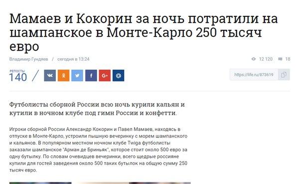 И Кокорин, и Мамаев выступали в составе сборной России на чемпионате Европы по футболу во Франции. Национальная команда покинула турнир без побед по итогам группового этапа. На турнире ни одному из участников вечеринки не удалось отметиться результативными действиями.