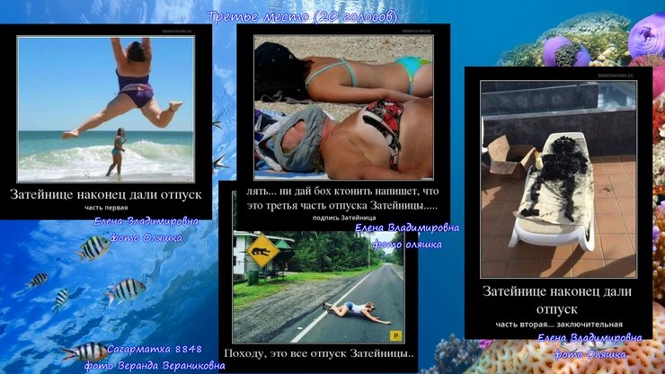 Отпуск Затейницы объединила в серию. Место проставила по картинке, набравшей большинство голосов.