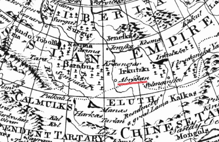 Такого города или населенного пункта не могло быть априори. Только в 1780-х годах здесь возникло село Усть-Абаканское, и никак иначе!