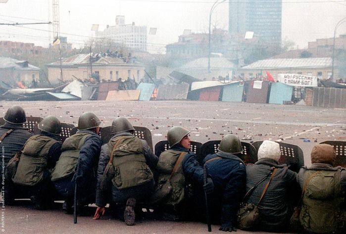 Давно закрашенные стены Белого дома, ставшего теперь оплотом режима, ведущего свою родословную из 93-го, до сих пор вопиют о возмездии. Смена идеологической парадигмы в России не привела к осуждению политики Ельцина и ее приспешников. Им до сих пор поют дифирамбы высшие лица государства, хотя именно контраст с ельцинизмом является залогом устойчивости сегодняшней системы. После смерти того или иного «деятеля» ельцинской поры льет слезы вся «прогрессивная» общественность, а их жесткая, но обоснованная критика воспринимается как оскорбление либеральных святынь. До сих пор нет правовой оценки процессов, происходивших в начале 90-х. Никто не понес никакой ответственности за массовые убийства мирного населения 3-4 октября. Никто до сих пор не извинился за сотни погубленных и искалеченных жизней. Беспрецедентное преступление власти против собственных граждан по-прежнему считается досадным недоразумением, обусловленным кризисом власти. Россия, вперед! О плохом забудь – дело прошлое.