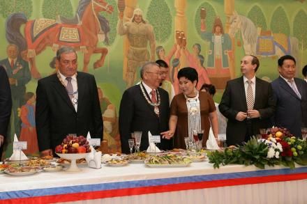 — Да дома обычно все президенты Якутии обедали, все же семейные люди, серьезные. Не знаю, что у них там на столах бывает, но, думаю, то, что домашние приготовят, то они и едят. Скорее всего, это обычная традиционная еда, без изысков. Другое дело — протокольные мероприятия. На приемах мы обязательно составляем меню из национальных блюд. Все бывшие президенты, и президент нынешний, едят строганину, индигирку, хаан (кровяная колбаса. — Авт.), ойогос (вареное мясо. — Авт), всевозможную выпечку. На десерт мы подаем керчах — или свежевзбитый, или в виде мороженого с ягодами.